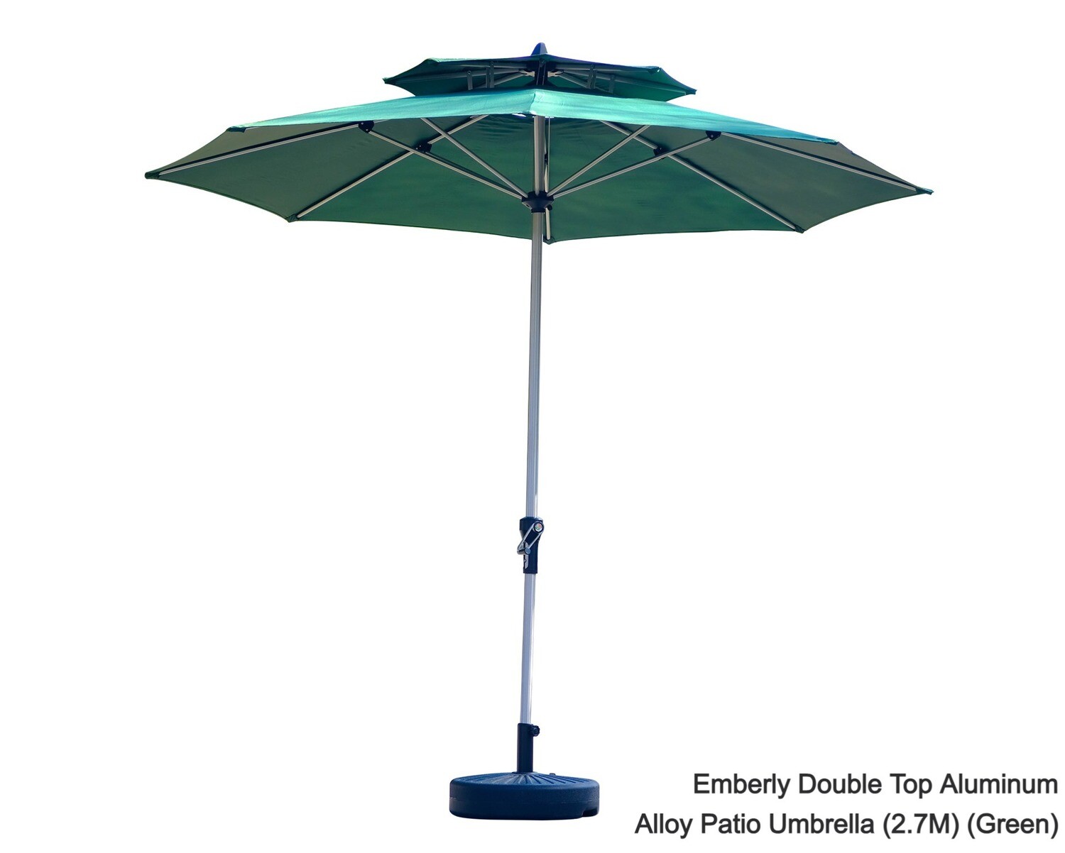 Emberly Double Top Aluminum Alloy Waterproof Coating with Marble Stone Base Patio Umbrella (2.7M) (Khaki, Green)