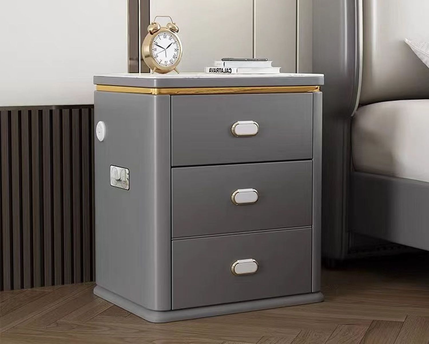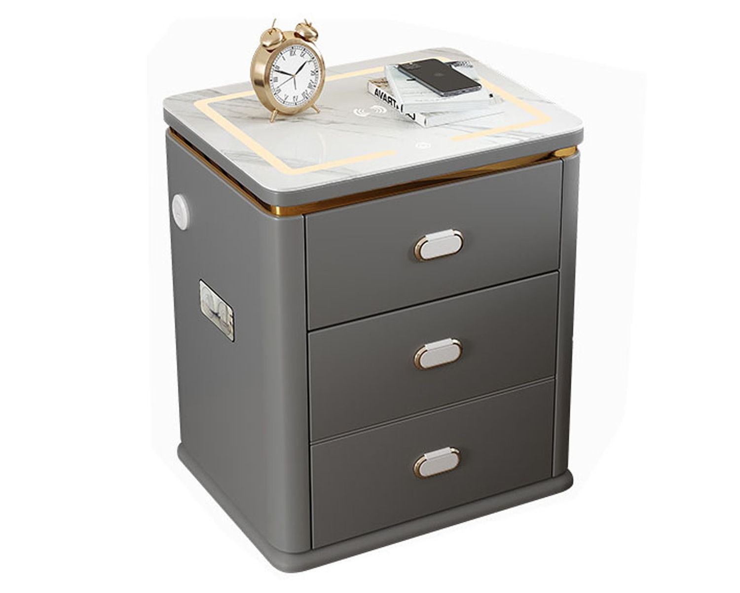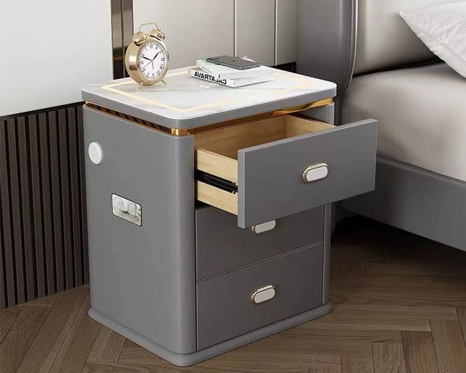 Holly w/ Security Lock & Built-in Safe Box, Wireless Fast Charge, LED Light, USB Port, Bluetooth Audio Bedside Drawer