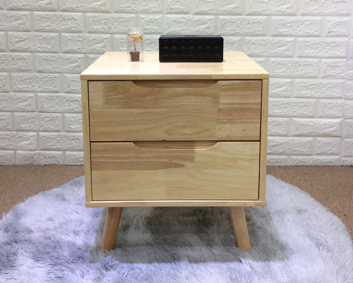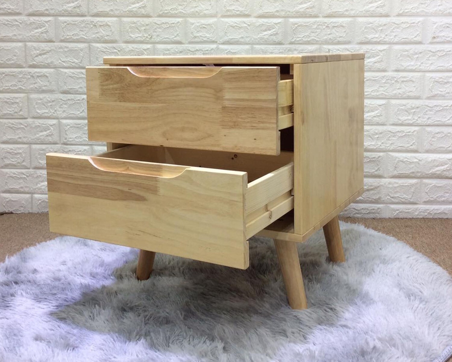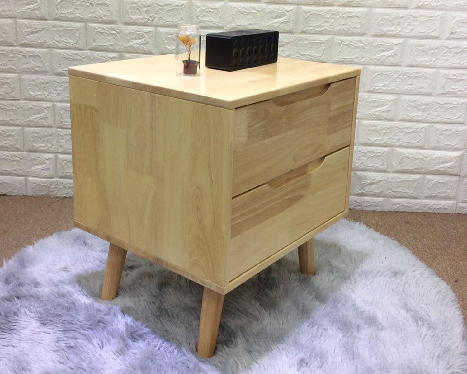 Montana Solid Thailand Rubberwood Bed Side Table (with Drawers)